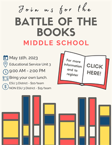 ESU 3 will host the Battle of the Books! Battle of the Books is all about READING…..and having fun while doing it.