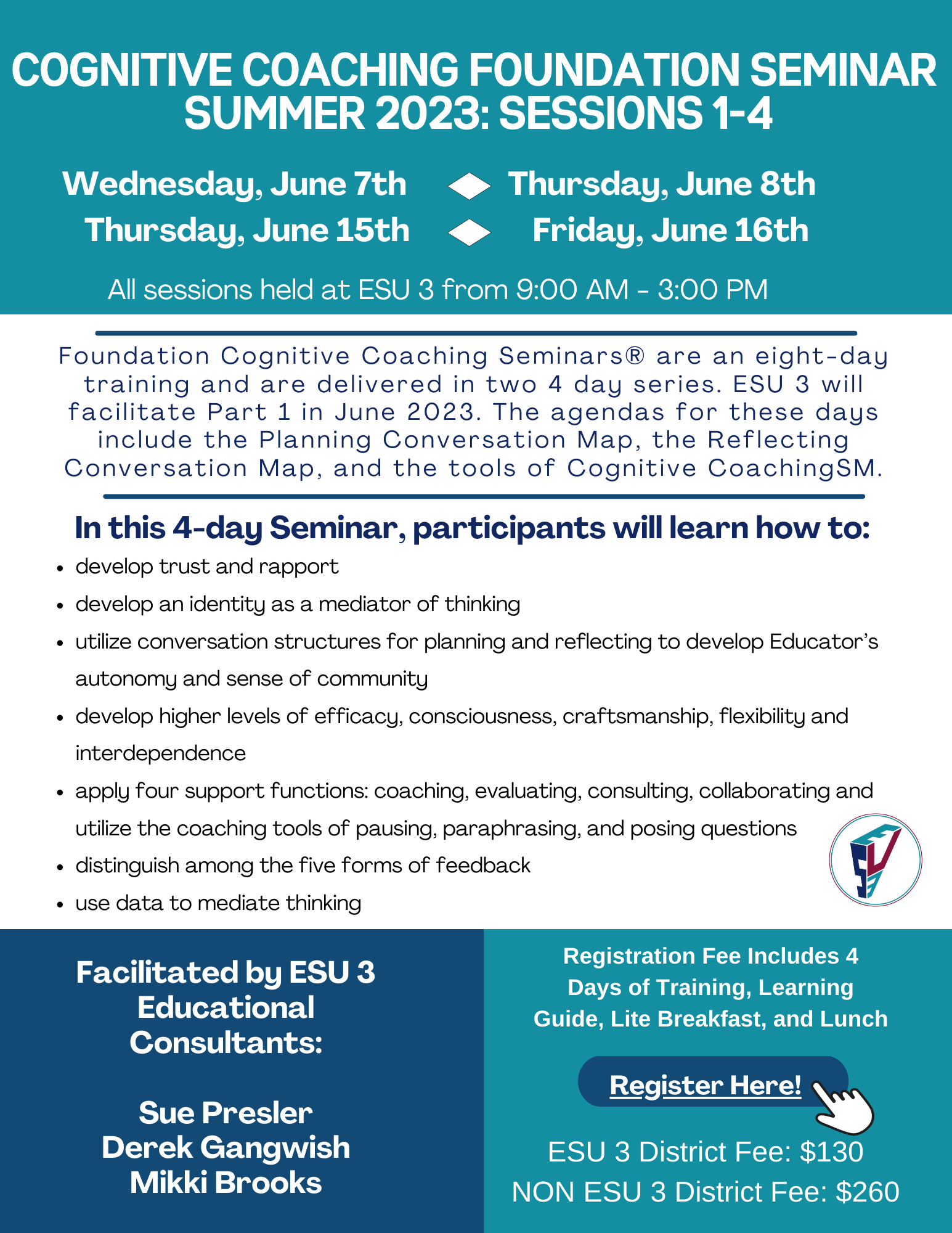 Foundation Cognitive Coaching Seminars® are eight-day trainings and are delivered in two 4 day series.