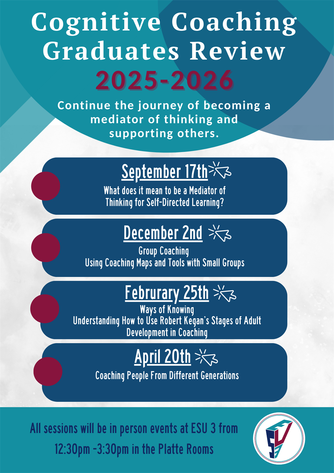 Disclaimer: By participating in this event organized by ESU #3, you hereby grant permission to ESU #3 to use your image and likeness captured during the event for promotional and media purposes. This includes, but is not limited to, photographs, videos, and audio recordings. If you wish to withdraw your consent regarding the use of your media, please reach out to the primary contact of this event.