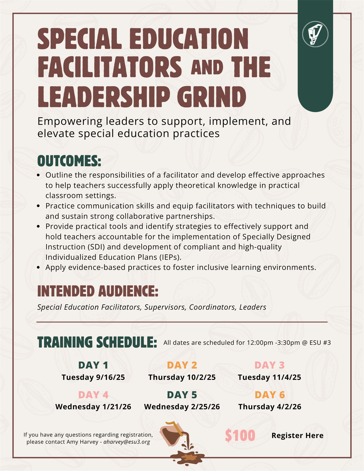 | | 24386 | Special Education Facilitators and the Leadership Grind | 1/21/2026 12:00:00 PM | | ESU#3 Student Services | Harvey | System.Collections.Generic.List`1[odie.workshops.Facilitator] | | 0.00 |  | odie.workshops.Section |