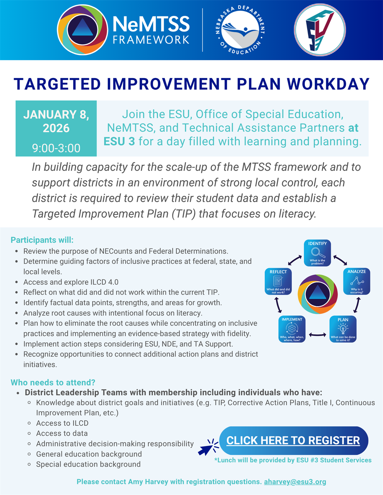 Join the ESU, Office of Special Education, NeMTSS, and Technical Assistance Partners at ESU 3 for a day filled with learning and planning.